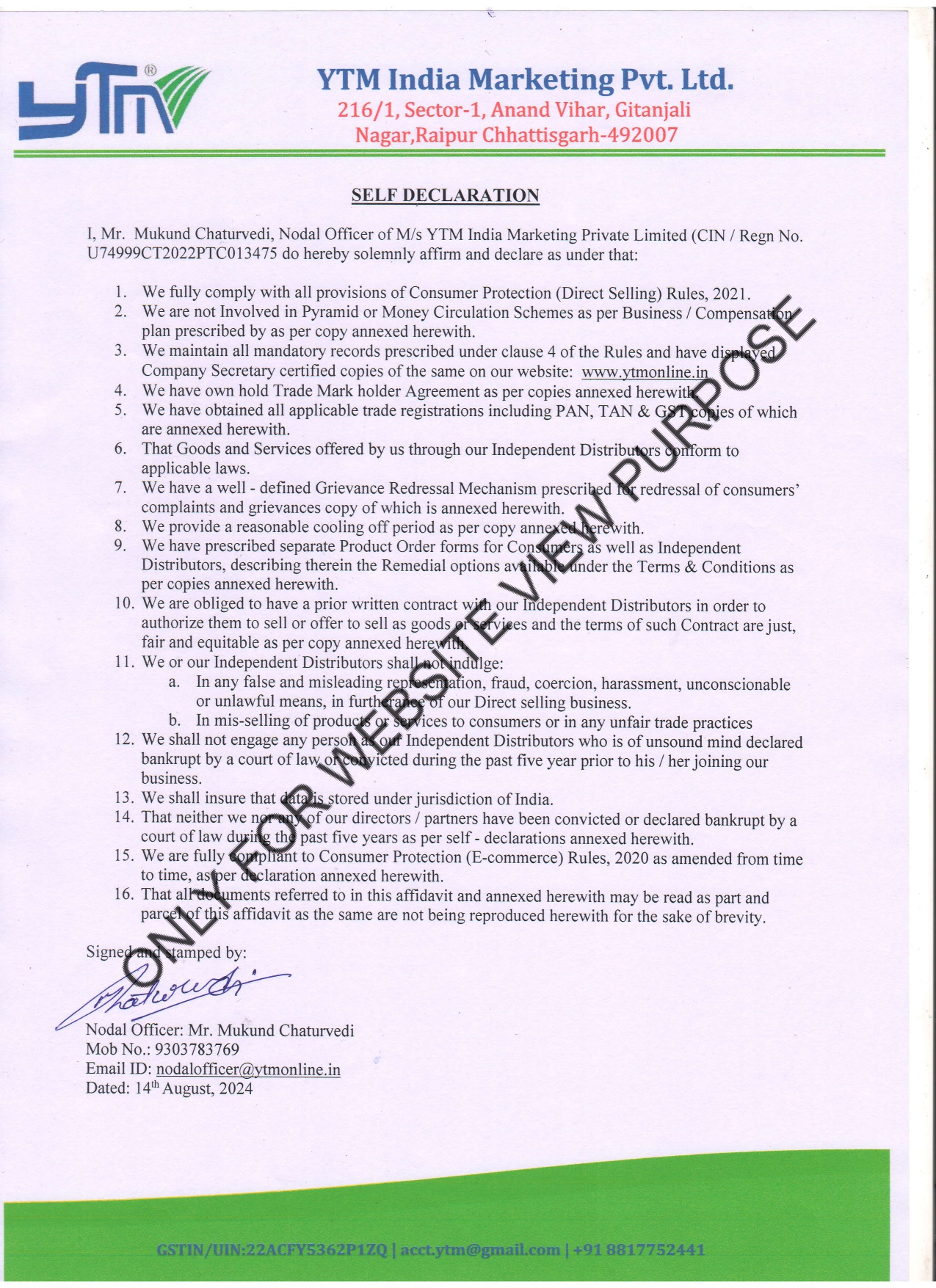 Self Declaration